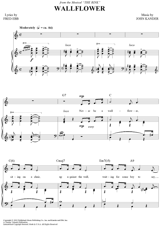 Digital Sheet Music for Wallflower by John Kander, Fred Ebb scored for Piano/Vocal/Chords; id:249722