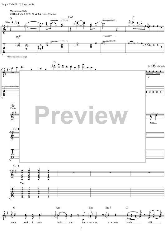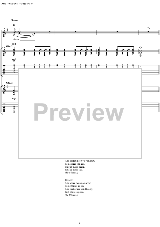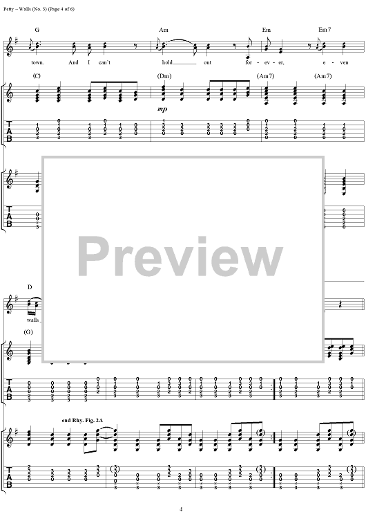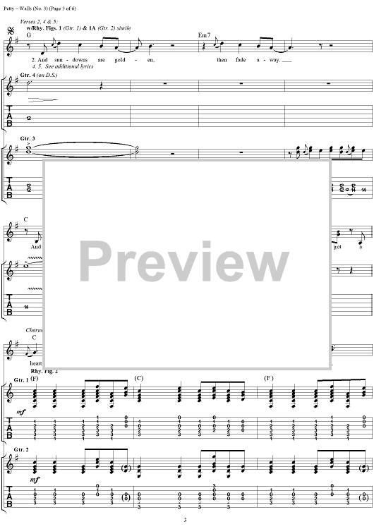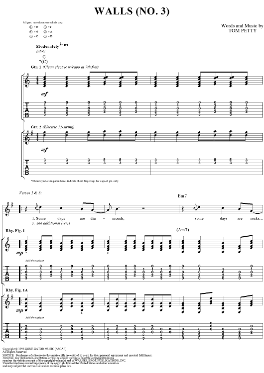Digital Sheet Music for Walls (No. 3) by Tom Petty scored for Guitar Tab/Vocal; id:113043