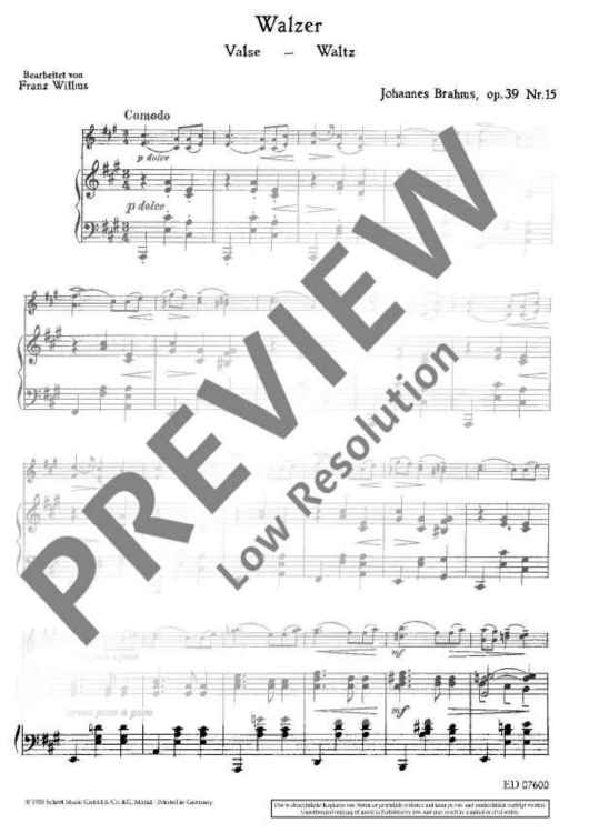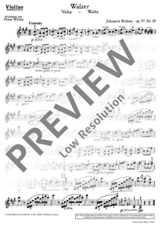 Digital Sheet Music for Waltz A major by Johannes Brahms scored for Violin And Piano; id:474920