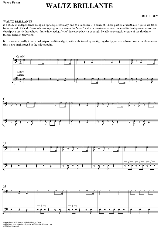Digital Sheet Music for Waltz Brillante by Fred Hoey scored for Solo Snare Drum; id:433909