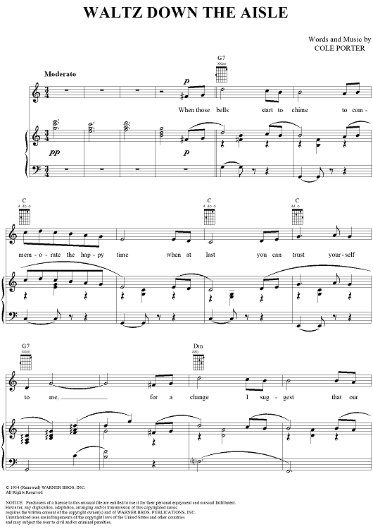 Digital Sheet Music for Waltz Down the Aisle by Cole Porter scored for Piano/Vocal/Chords; id:359454