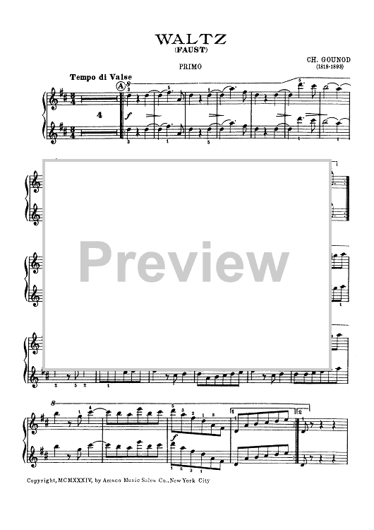 Digital Sheet Music for Waltz (Faust) by Charles Gounod scored for 1 Piano, 4 Hands; id:461055