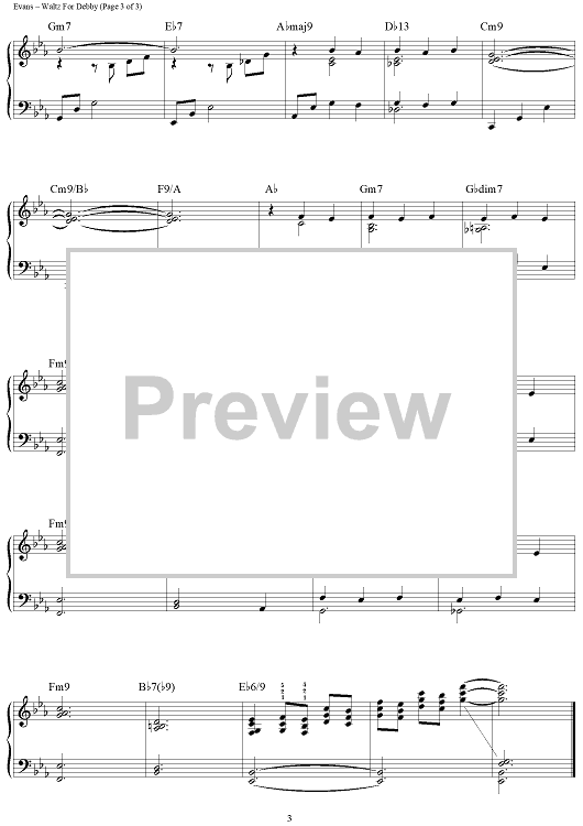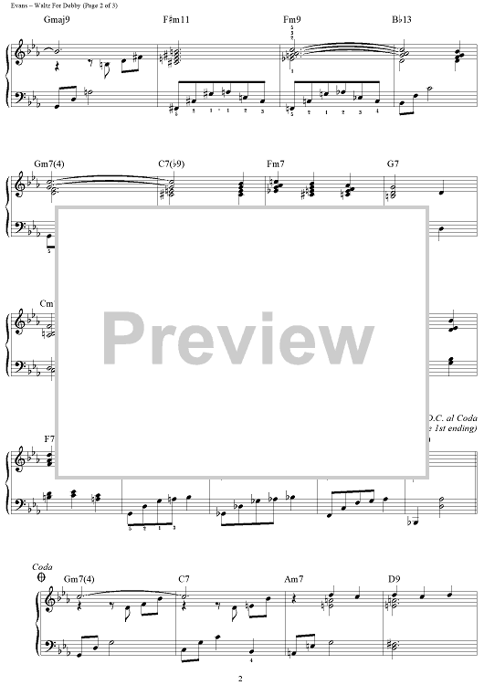 Digital Sheet Music for Waltz For Debby by Bill Evans, Gene Lees, Brent Edstrom scored for Piano Solo; id:464390