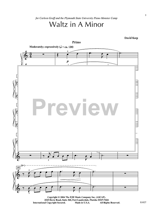 "Waltz in A Minor" Sheet Music by David Karp