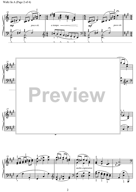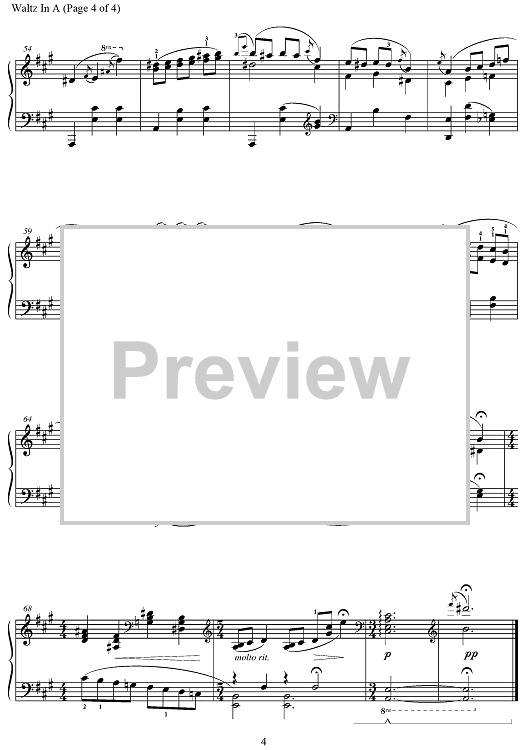 Digital Sheet Music for Waltz In A by Wynn-Anne Rossi scored for Piano Solo; id:500539