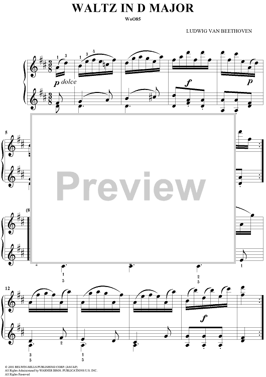 Digital Sheet Music for Waltz in D Major, WoO85 by Ludwig van Beethoven, Donald Beattie, Delayna Beattie scored for Easy Piano; id:297654