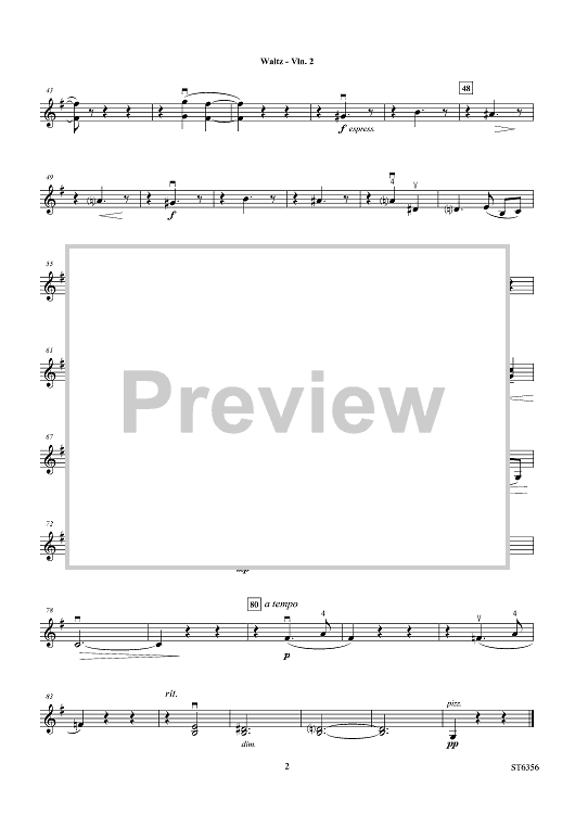 Digital Sheet Music for Waltz (La plus que lente) - Violin 2 by Claude Debussy, Matthew Moreno scored for Orchestra; id:448250