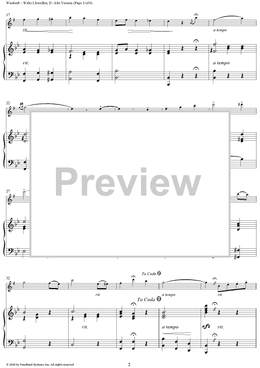 Digital Sheet Music for Waltz Llewellyn - Piano Score (for Alto Sax) by , Rudy Wiedoeft scored for Alto Sax/Piano; id:355290