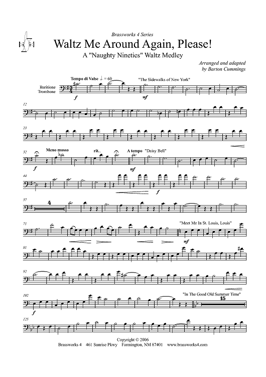 Digital Sheet Music for Waltz Me Around Again, Please! - Baritone/Trombone by Barton Cummings scored for Brass Choir; id:321435