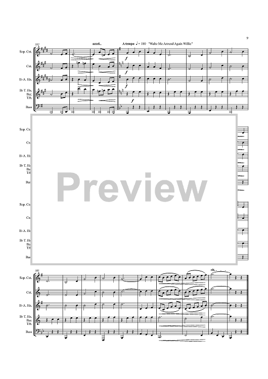 Digital Sheet Music for Waltz Me Around Again, Please! - Score by Barton Cummings scored for Brass Choir; id:321429