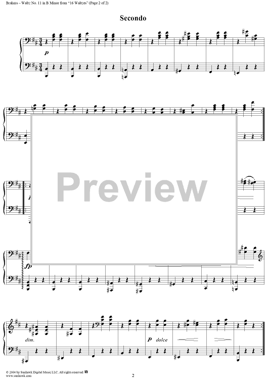 Digital Sheet Music for Waltz No. 11 in B Minor by Johannes Brahms scored for 1 Piano, 4 Hands; id:303978