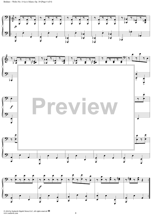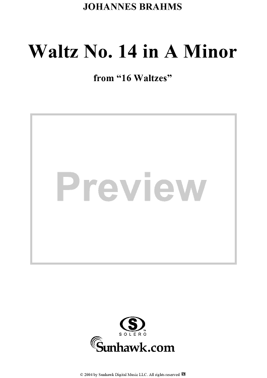 "Waltz No. 14 in A Minor" Sheet Music by Johannes Brahms