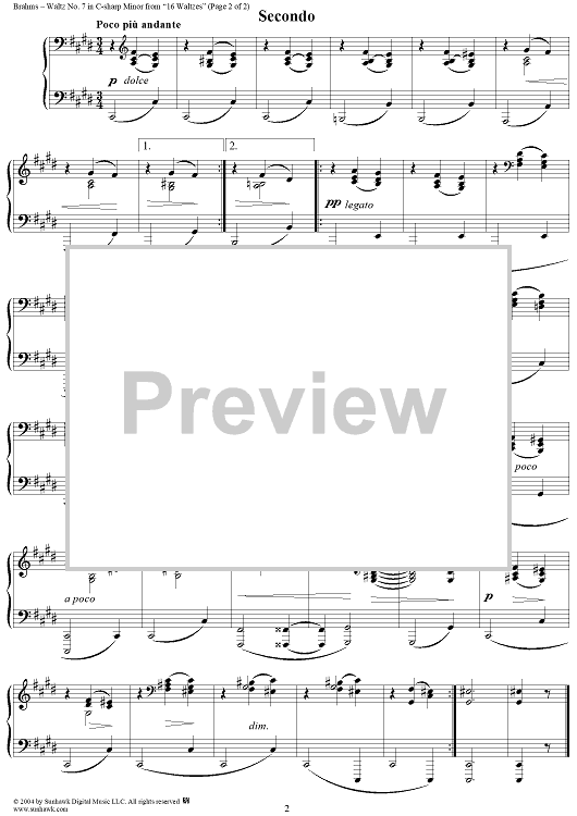 Digital Sheet Music for Waltz No. 7 in C-sharp Minor by Johannes Brahms scored for 1 Piano, 4 Hands; id:303971