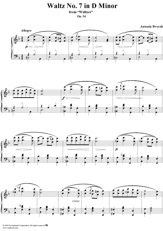 "Waltz No. 7 in D minor - From |"Waltzes" op. 54" Sheet Music by Antonín Dvorák
