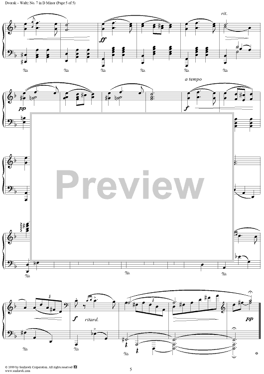 Digital Sheet Music for Waltz No. 7 in D minor - From |"Waltzes" op. 54 by Antonín Dvorák scored for Piano Solo; id:271052
