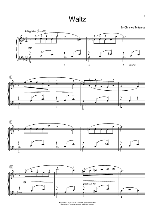 Digital Sheet Music for Waltz by Christos Tsitsaros scored for Piano; id:384295