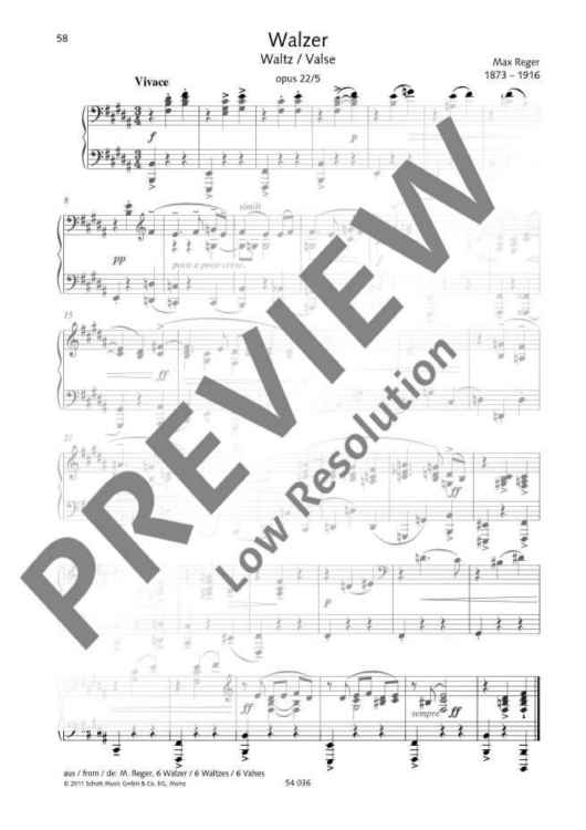 Digital Sheet Music for Waltz by Max Reger scored for Piano (4 Hands); id:481671