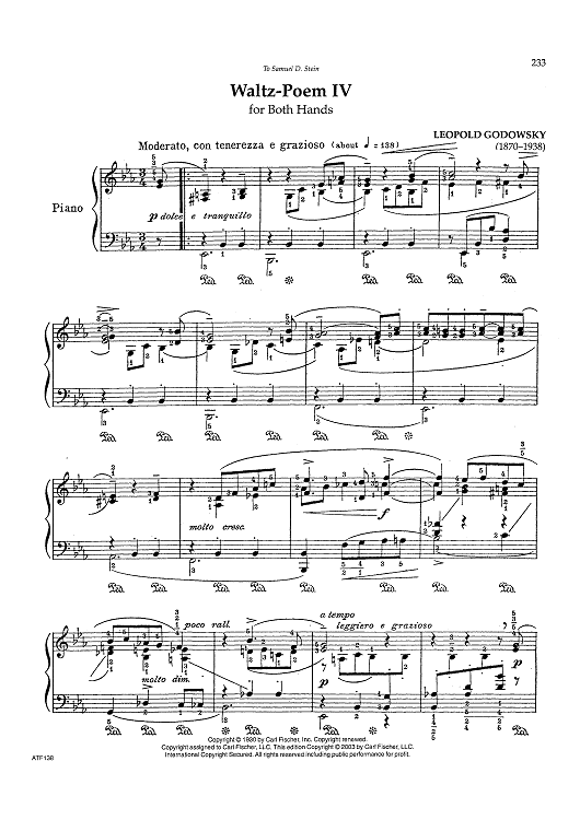 "Waltz-Poem IV - for the Both Hands" Sheet Music by Leopold Godowsky