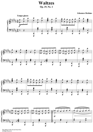 "Waltzes, op. 39, no. 1 in B major" Sheet Music by Johannes Brahms