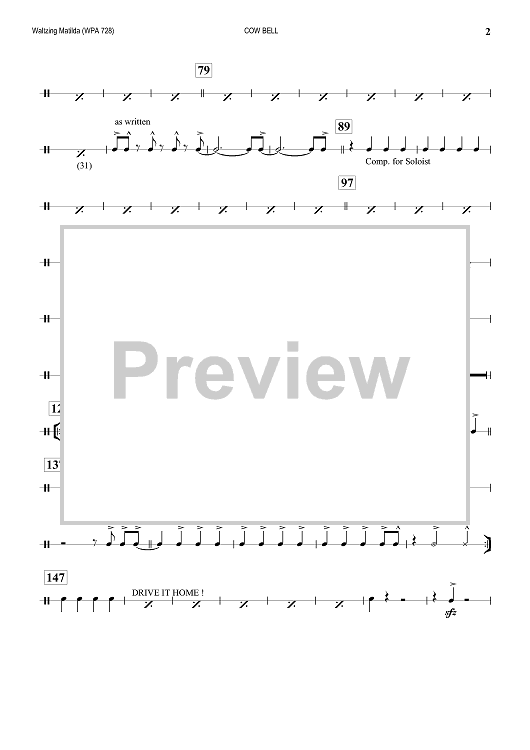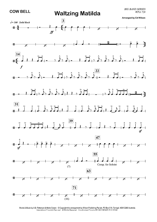 Digital Sheet Music for Waltzing Matilda & Advance Australia Fair - Cowbell by Marie Cowan, Ed Wilson, A.B. Patterson, P.D. McCormick scored for Jazz Ensemble; id:356811