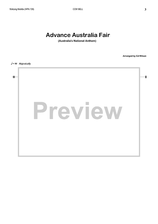 "Waltzing Matilda & Advance Australia Fair - Cowbell" Sheet Music by Marie Cowan