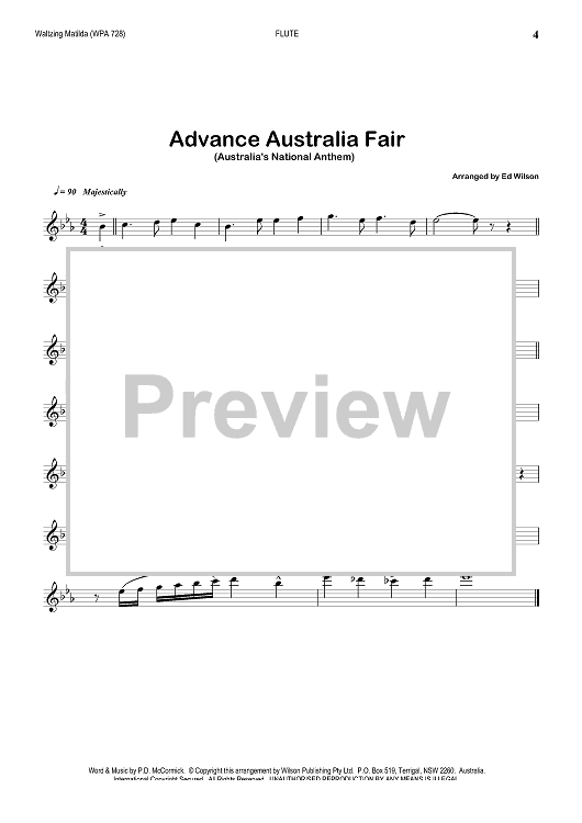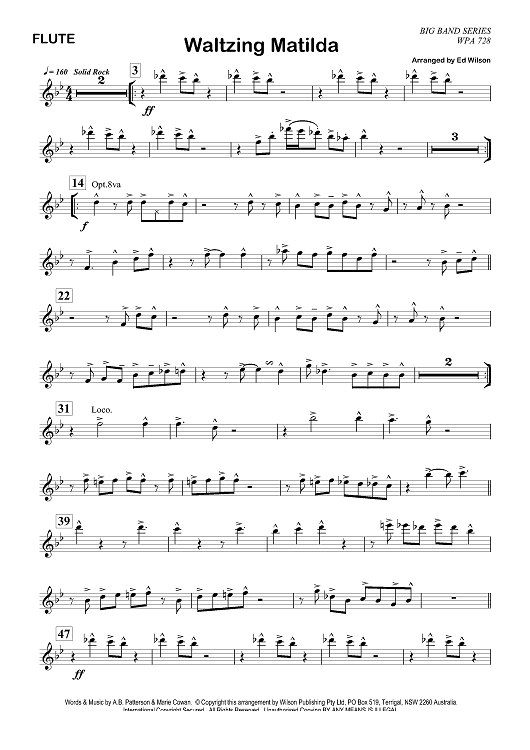 Digital Sheet Music for Waltzing Matilda & Advance Australia Fair - Flute by Marie Cowan, Ed Wilson, A.B. Patterson, P.D. McCormick scored for Jazz Ensemble; id:356813
