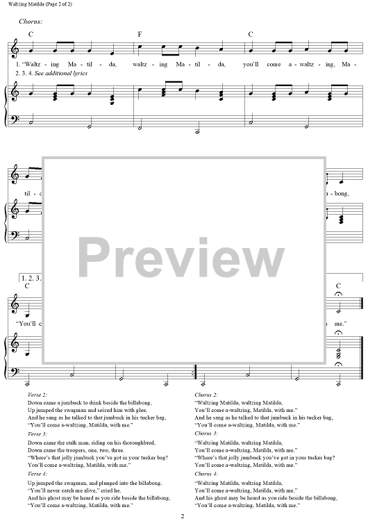 Digital Sheet Music for Waltzing Matilda by Traditional scored for Piano/Vocal/Chords; id:289210