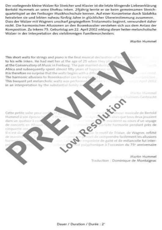 "Walzer für Inken - Score" Sheet Music by Bertold Hummel
