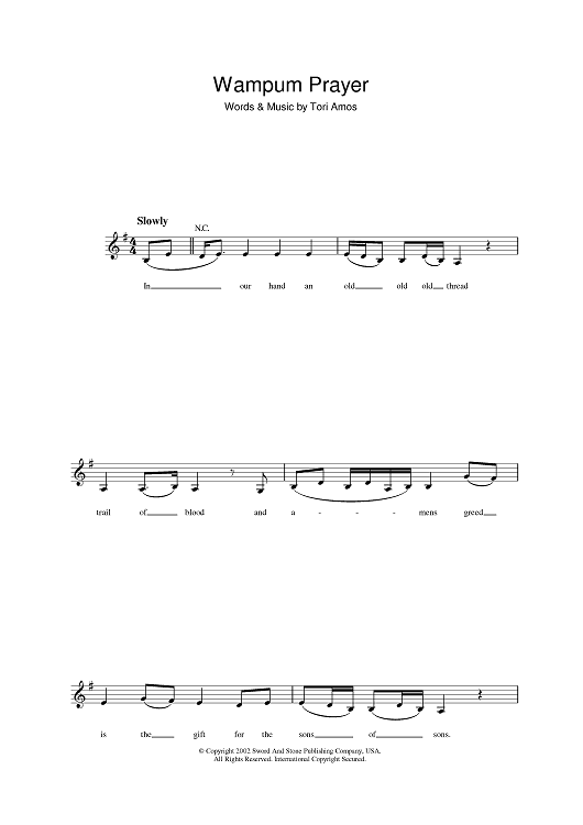 Digital Sheet Music for Wampum Prayer by Tori Amos scored for Lead Sheet; id:392145