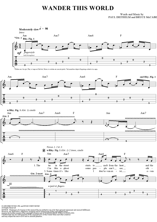 Digital Sheet Music for Wander This World by Paul Diethelm, Jonny Lang, Bruce McCabe scored for Guitar Tab/Vocal; id:271344