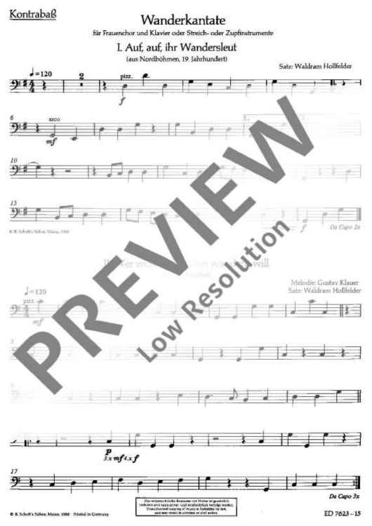 Digital Sheet Music for Wanderkantate - Double Bass by Waldram Hollfelder scored for Women's Choir (smeza) With Piano Or String Orchestra Or Plucked Orchestra; id:488763