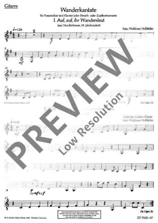 Digital Sheet Music for Wanderkantate - Guitar by Waldram Hollfelder scored for Women's Choir (smeza) With Piano Or String Orchestra Or Plucked Orchestra; id:488765