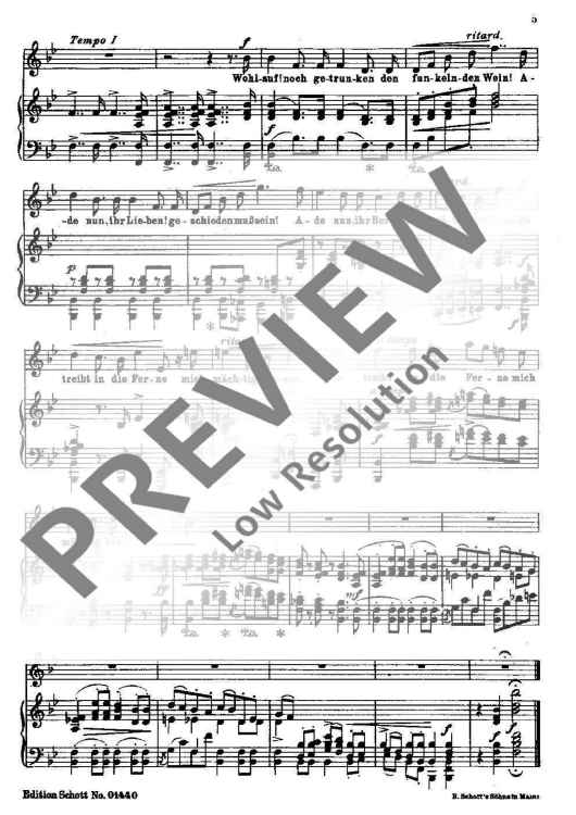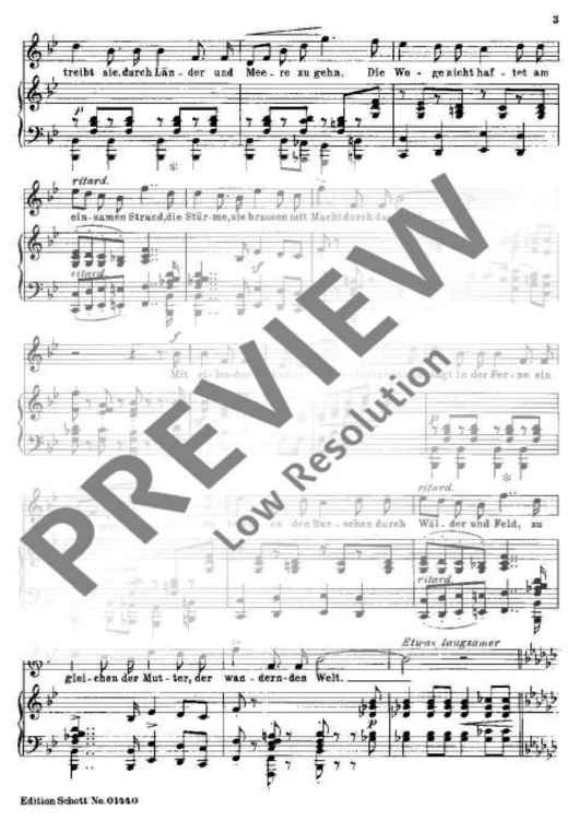 Digital Sheet Music for Wanderlied in B flat major by Robert Schumann scored for High Voice And Piano; id:482423
