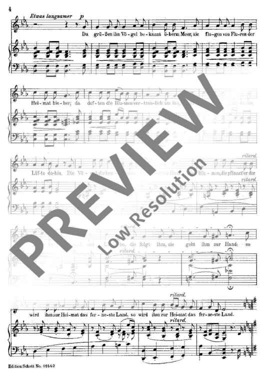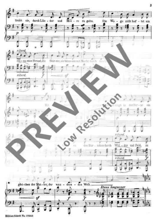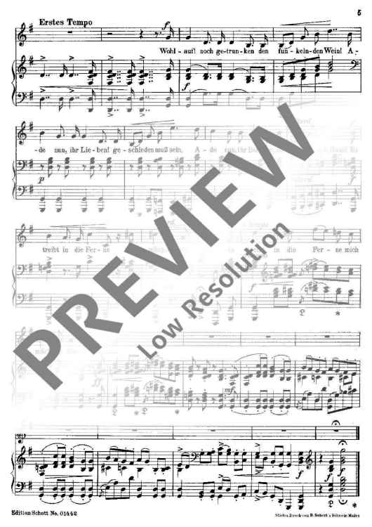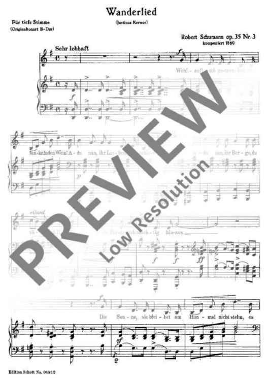 Digital Sheet Music for Wanderlied in D major by Robert Schumann scored for Low Voice And Piano; id:482430