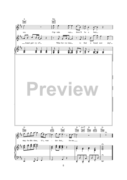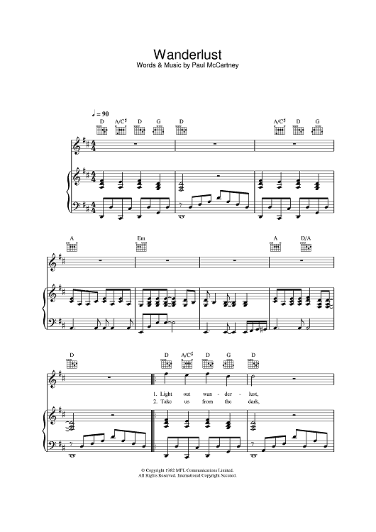 Digital Sheet Music for Wanderlust by Paul McCartney scored for Piano/Vocal/Chords; id:375766