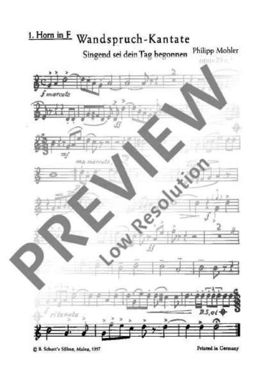 Digital Sheet Music for Wandspruch-Kantate - Set of Parts by Philipp Mohler scored for Mixed Choir (satb) Or Men's Choir (ttbb) With Piano Or Brass Instruments (4.3.3.1) And Timpani; id:488957