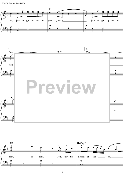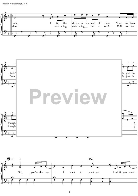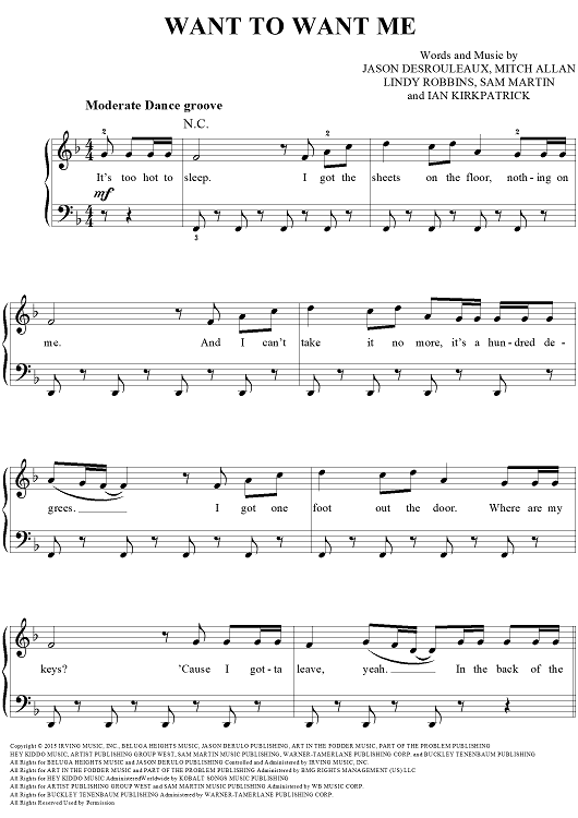 Digital Sheet Music for Want To Want Me by Lindy Robbins, Mitch Allan, Sam Martin, Jason Derulo, Ian Kirkpatrick scored for Easy Piano/Vocal/Chords; id:466676