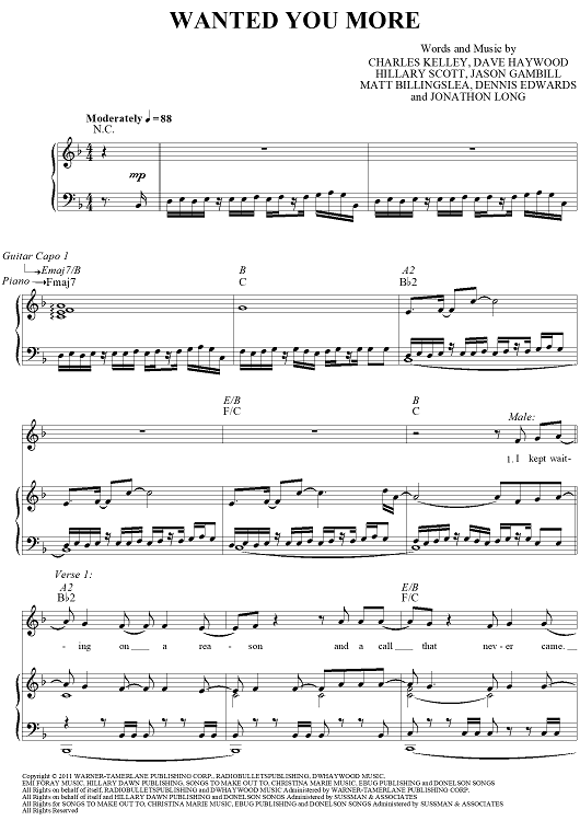 Digital Sheet Music for Wanted You More by Hillary Scott, Lady Antebellum, Charles Kelley, Dave Haywood, Jason Gambill, Matt Billingslea, Dennis Edwards, Jonathon Long scored for Piano/Vocal/Chords; id:451688
