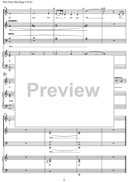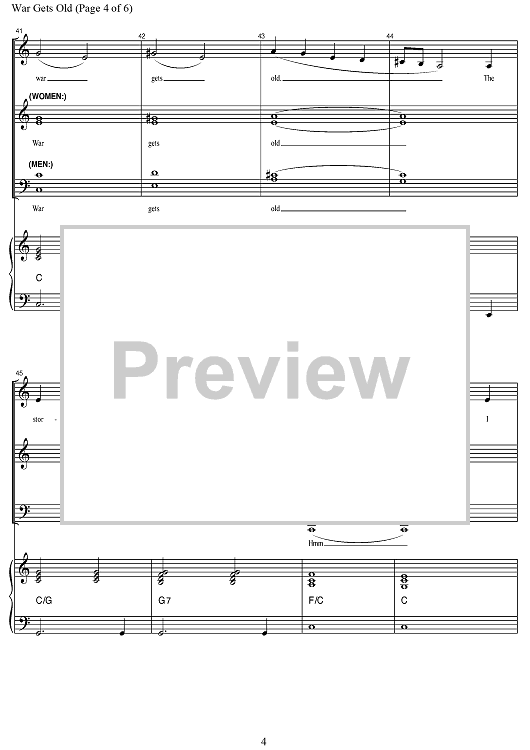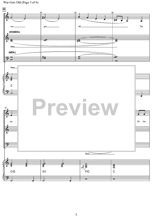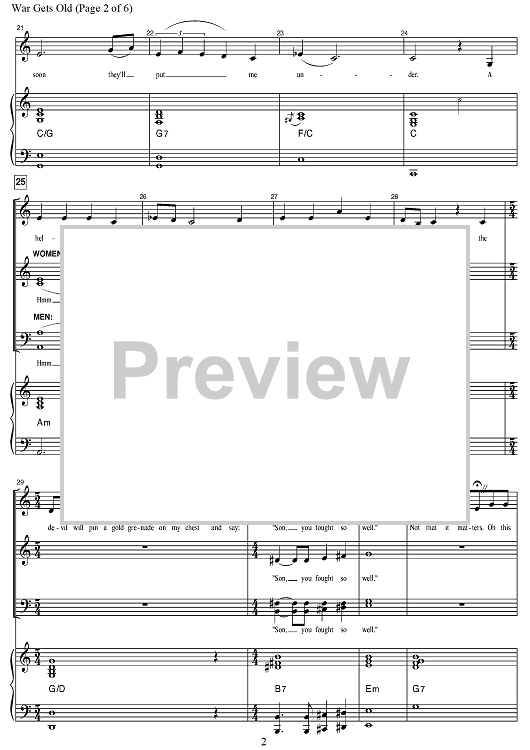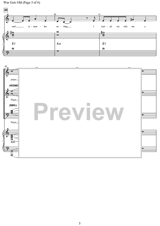 Digital Sheet Music for War Gets Old by Elizabeth Swados, Kris Kukul scored for Piano/Vocal/Chords; id:469458