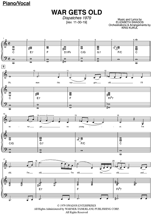 "War Gets Old" Sheet Music by Elizabeth Swados