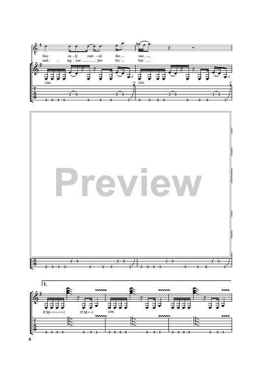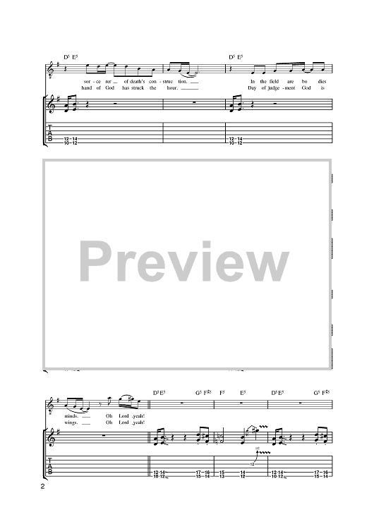 Digital Sheet Music for War Pigs by Bill Ward, Black Sabbath, Geezer Butler, Faith No More, Tony Iommi, Ozzy Osbourne scored for Guitar Tab; id:387832