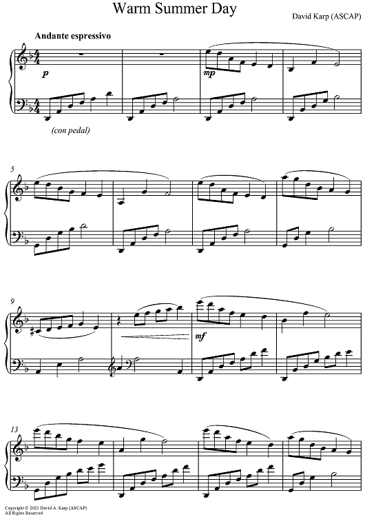 Digital Sheet Music for Warm Summer Day by David Karp scored for Piano Solo; id:497186