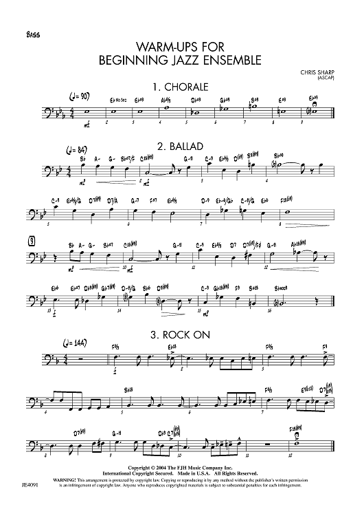 Digital Sheet Music for Warm-ups for Beginning Jazz Ensemble - Bass by Chris Sharp scored for Jazz Ensemble; id:455851