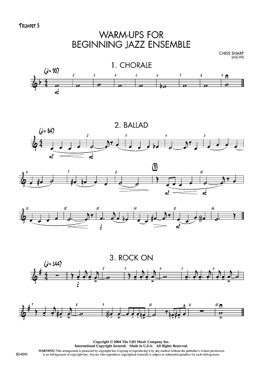 "Warm-ups for Beginning Jazz Ensemble - Opt. Trumpet 3" Sheet Music by Chris Sharp