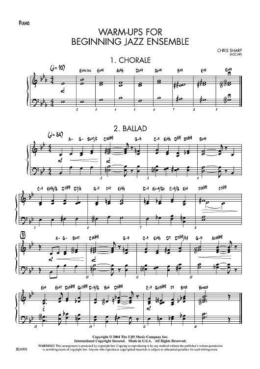 "Warm-ups for Beginning Jazz Ensemble - Piano" Sheet Music by Chris Sharp