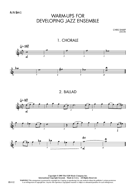 Digital Sheet Music for Warm-ups for Developing Jazz Ensemble - Alto Sax 1 by Chris Sharp scored for Jazz Ensemble; id:455973