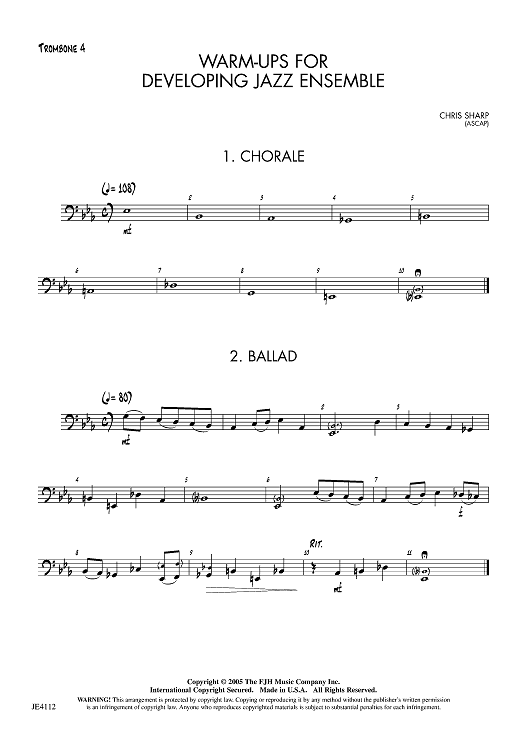 Digital Sheet Music for Warm-ups for Developing Jazz Ensemble - Opt. Trombone 4 by Chris Sharp scored for Jazz Ensemble; id:455985