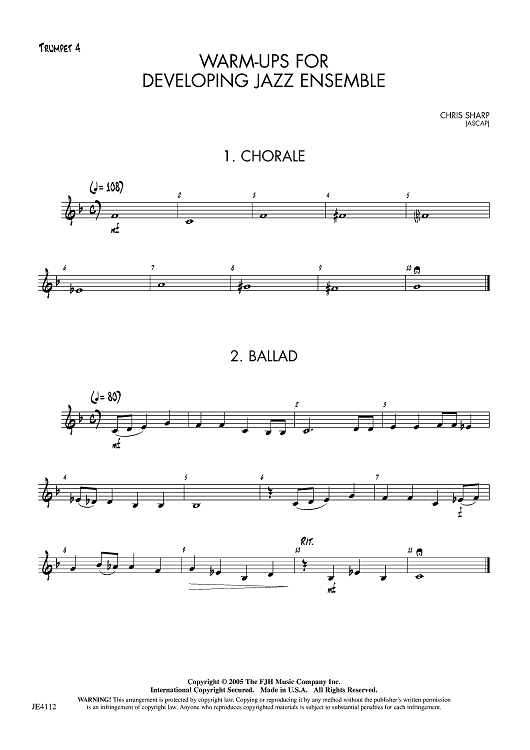 Digital Sheet Music for Warm-ups for Developing Jazz Ensemble - Opt. Trumpet 4 by Chris Sharp scored for Jazz Ensemble; id:455981