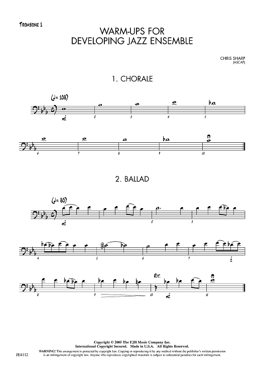 Digital Sheet Music for Warm-ups for Developing Jazz Ensemble - Trombone 1 by Chris Sharp scored for Jazz Ensemble; id:455982
