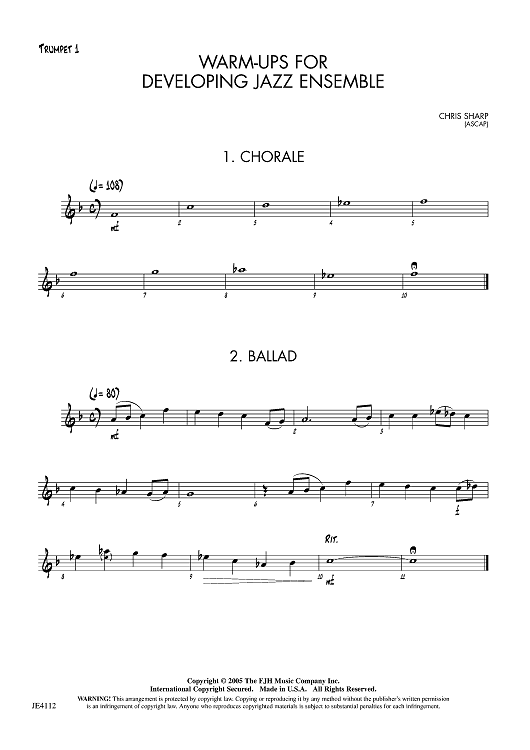Digital Sheet Music for Warm-ups for Developing Jazz Ensemble - Trumpet 1 by Chris Sharp scored for Jazz Ensemble; id:455978
